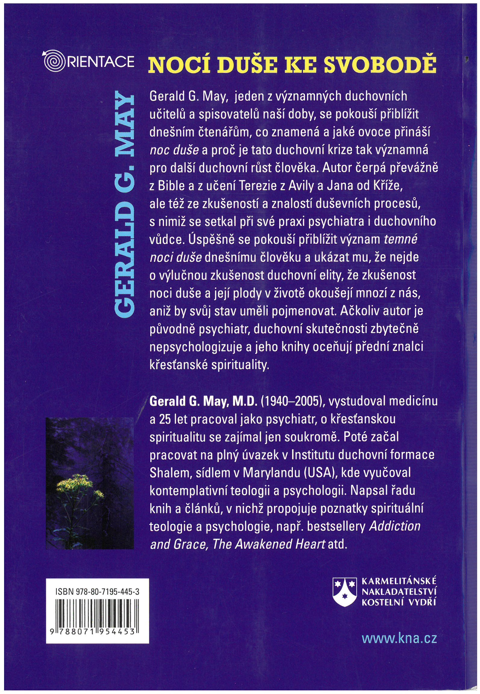 Knihu Nocí duše ke svobodě jsem se rozhodl napsat zčásti proto, že dle mého přesvědčení je jak starší, tak moderní pojetí temné noci chybné. Temná noc není vyhrazena pouze světcům, může zasáhnout každého a já věřím, že se skutečně v životě každého člověka nějak projeví. Ale na druhou stranu jde o něco mnohem důležitějšího, než je pouhé životní neštěstí nebo nepřízeň osudu. Je to hluboká proměna, která člověka přiblíží k nepopsatelné svobodě a radosti.