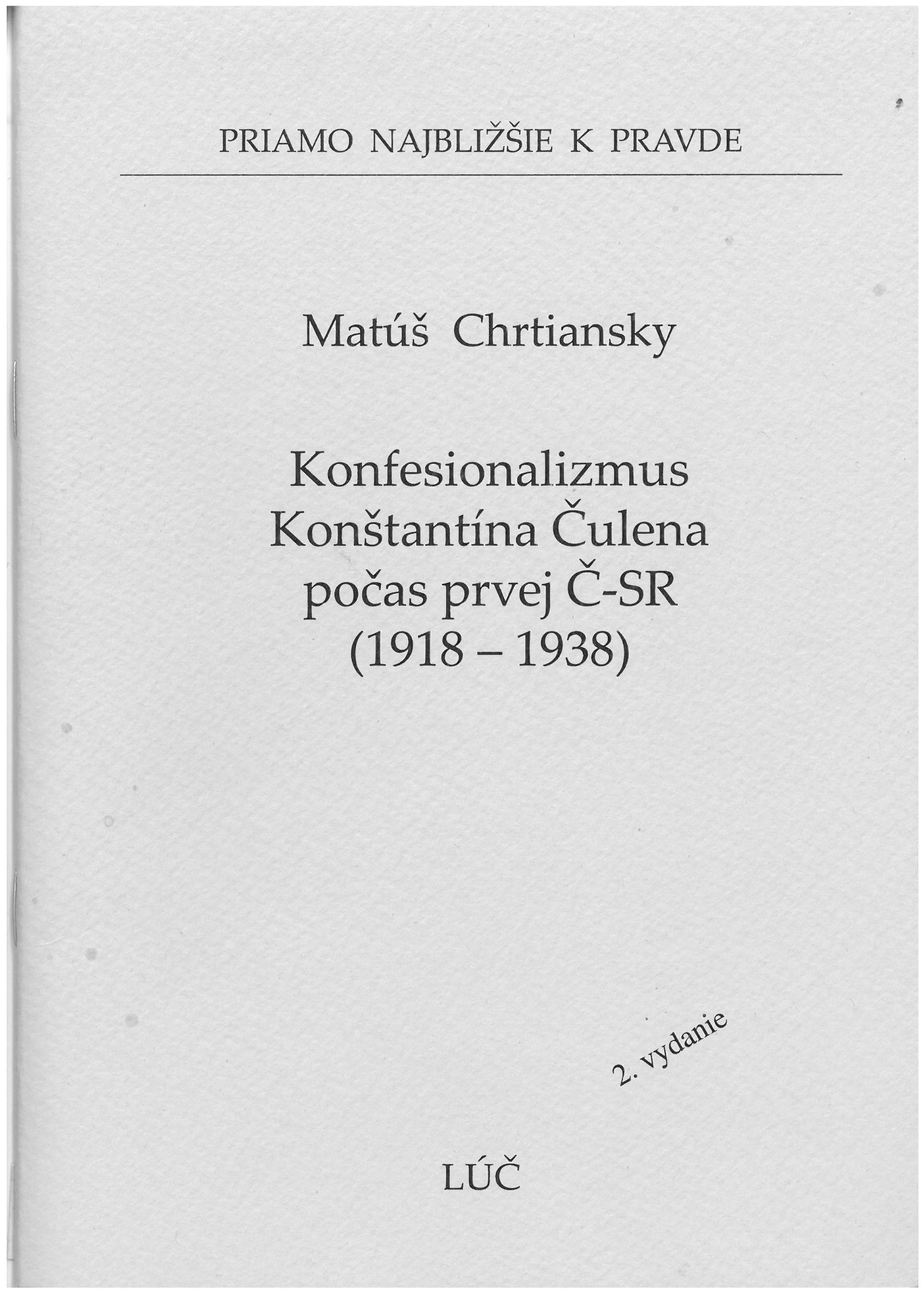 Konfesionalizmus Konšt. Čulena počas prvej Č-SR (1918 ‒ 1938) č. 62 2. vyd.
