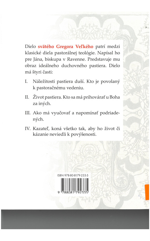 Dielo svätého Gregora Veľkého je jedným z klasických diel pastorálnej teológie. Bolo napísané pre Jána, biskupa v Ravenne, a predstavuje obraz ideálneho duchovného pastiera.