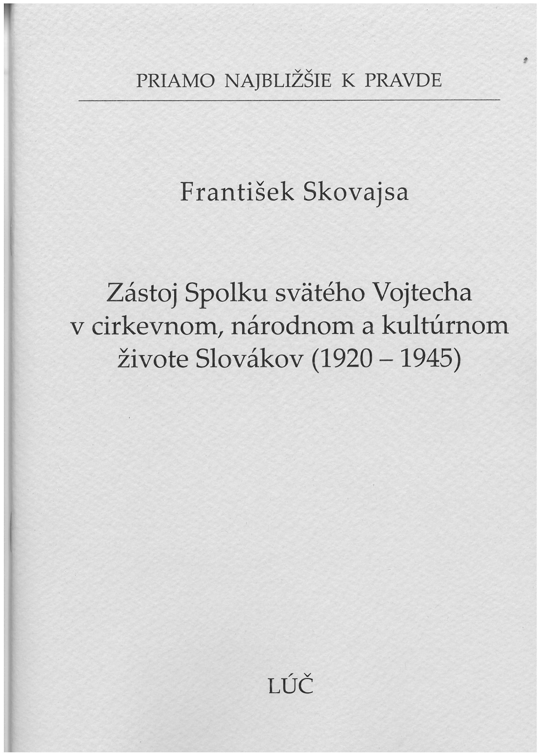 Zástoj Spolku sv. Vojtecha v cirkevnom, národ. a kultúr. živote Slovákov (1918-1938) č. 61