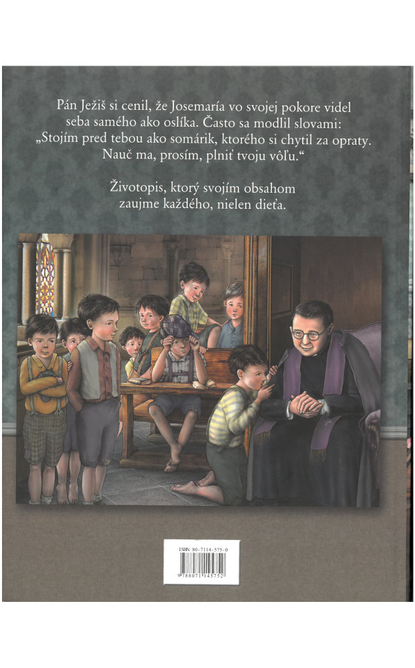 Životopis svätého Josemaríu Escrivu de Balaguer, zakladateľa Opus Dei, zaujme každého, nielen dieťa. Opisuje sa v ňom svätcovo detstvo, mladosť, keď sa rozhodoval odpovedať na Božie povolanie stať sa kňazom, ale i ďalšie roky naplnené intenzívnym vnútorným životom mladého kňaza, ktorý sa časom stal duchovným otcom mnohých ľudí po celom svete. Kniha, okrem pútavých a výnimočných ilustrácií, nesie vhodnou formou aj pre deti dôležité posolstvo, ktoré isto osloví nejednu vnímavú dušu.