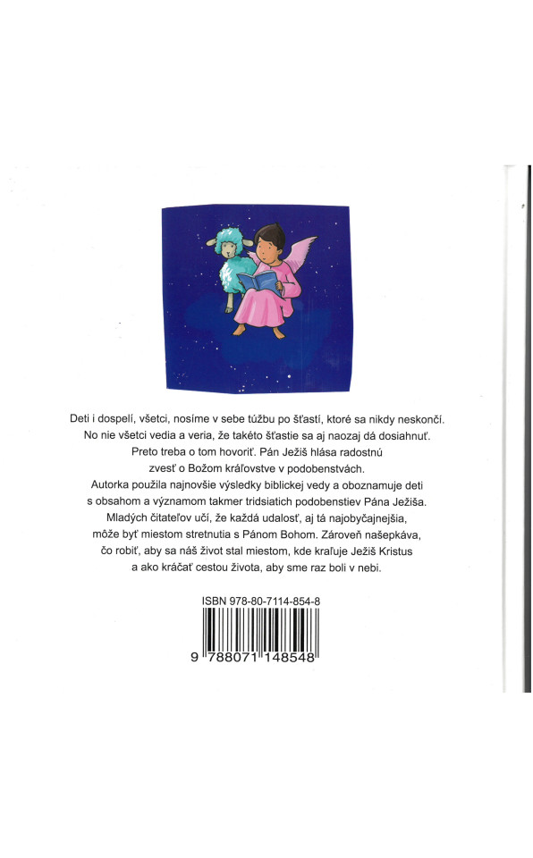 Kniha je pozvánkou pre deti a rodičov, starých rodičov a všetky staršie deti, ktoré už vedia čítať, do krajiny viery v scenérii evanjeliových príbehov. Autorka použila najnovšie výsledky biblickej vedy a oboznamuje deti s obsahom a významom takmer tridsiatich podobenstiev Pána Ježiša. Mladých čitateľov učí, že každá udalosť, aj tá najobyčajnejšia, môže byť miestom stretnutia s Pánom Bohom. Zároveň našepkáva, čo robiť, aby sa náš život stal miestom, kde kraľuje Ježiš Kristus a ako kráčať cestou života, aby sme raz boli v nebi